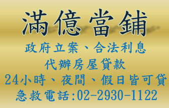 滿億當舖是經由政府合法立案成立的當舖,秉持著公開、誠信、便捷的經營理念來服務廣大的客戶。不管個人小額借款、公司週轉、工廠借款、大額融資、汽車借款、房屋二胎、個人借貸、臨時週轉金、、鑽石、珠寶、名錶